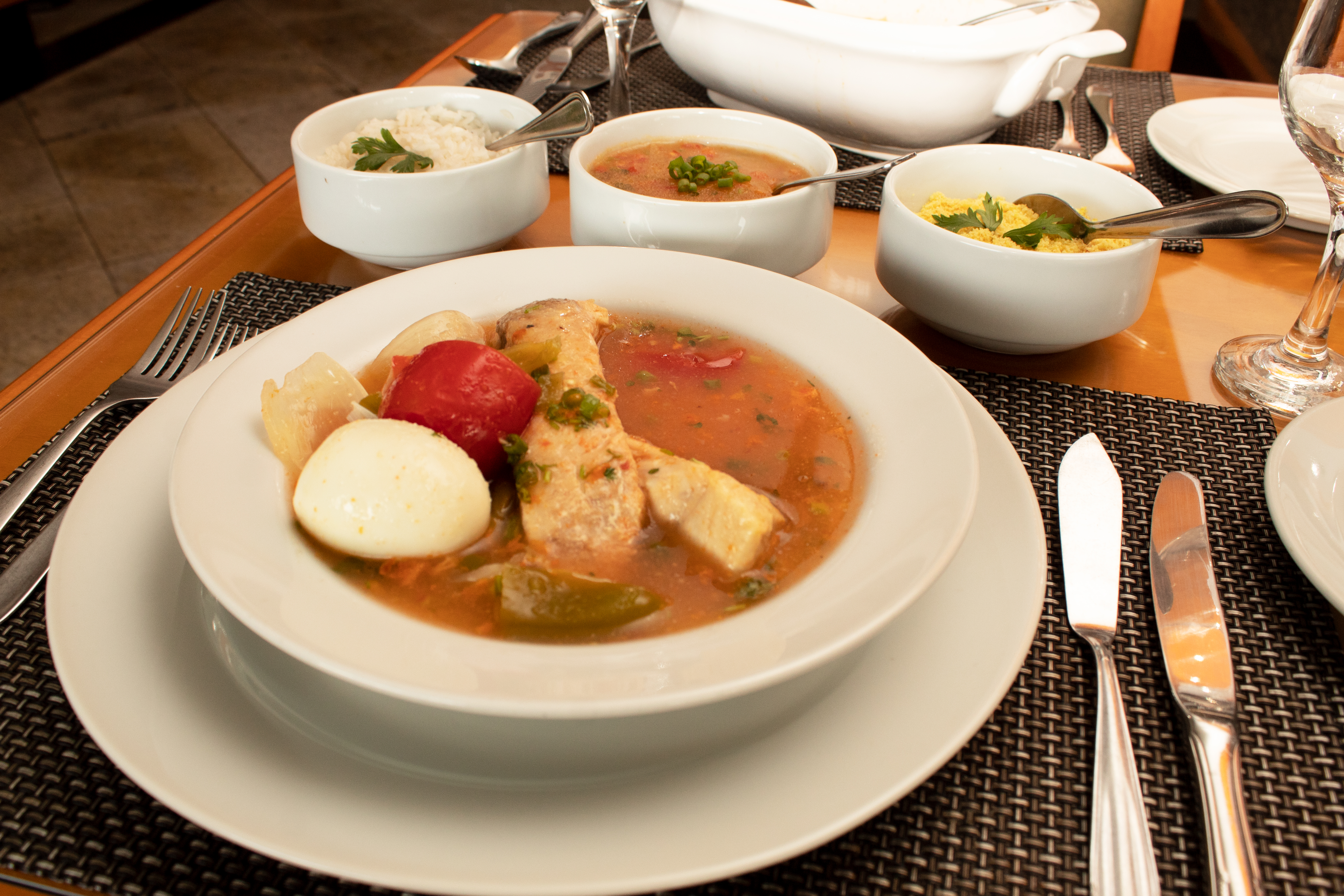 (Tambaqui ou Pirarucú: Servido com Arroz, Pirão e Farinha) |